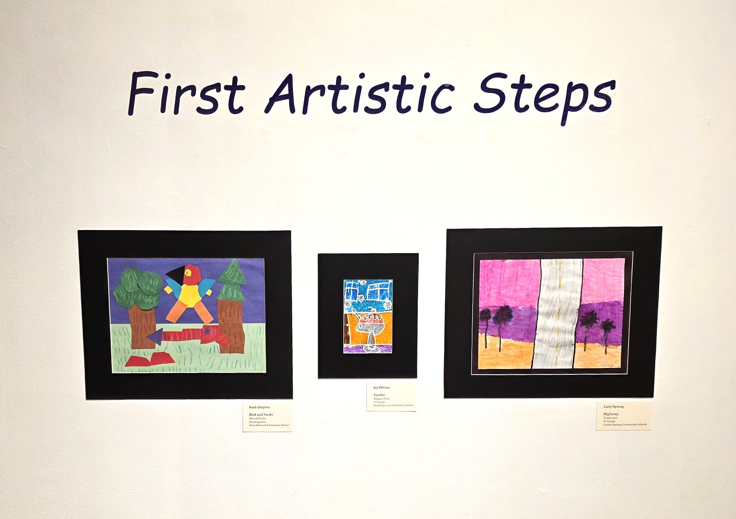 First Artistic Steps is the theme of the 42nd annual School Art Exhibition in celebration of Youth Art Month at the Charles H. MacNider Art Museum, Mason City. The exhibition is now on display in the Museum’s Center Space Gallery. This year the spotlight shines on students in grades K-4, celebrating their creativity and wonder.